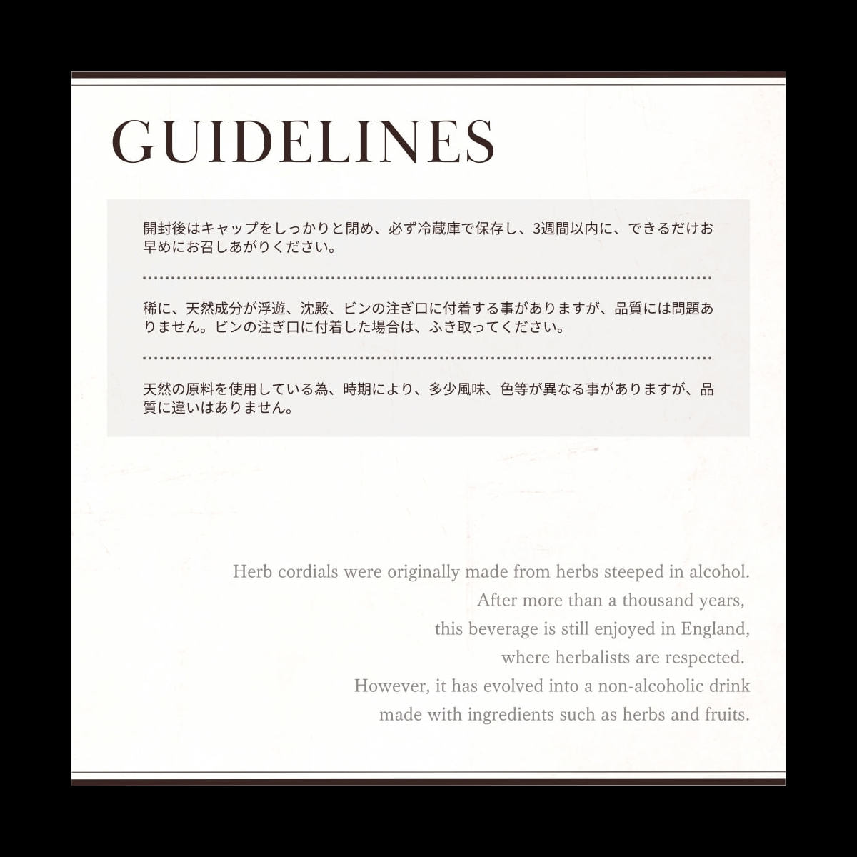 〈希釈の目安〉7(お湯・お水):1(コーディアル)
