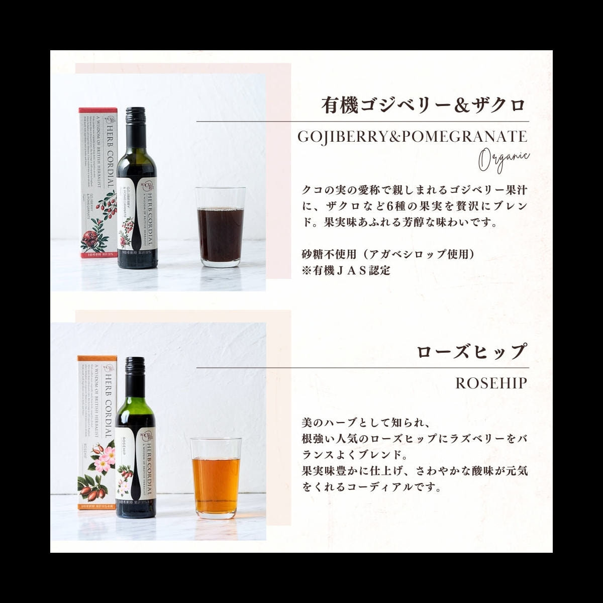 肌の美白効果とキメを整えてくれる美肌効果抜群のローズヒップをたっぷり含んだコーディアルです。